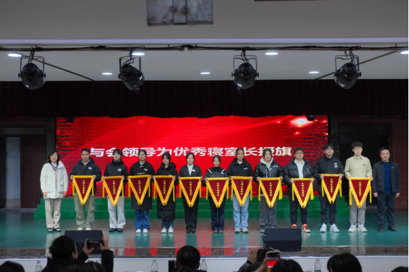 会上,孙建宣读了双桥校区2024级“文明示范寝室”和学生党员示范寝室名单获奖结果。随后,2位优秀寝室长代表分享了创建“文明示范寝室”的具体做法,给同学们提供了宝贵的经验;1名学生党员代表号召全体学生党员要以身作则,以实际行动发挥榜样示范作用;2名社区层长代表分享了如何做一个优秀的寝室长以及建立文明寝室的方法,鼓励寝室成员团结协作,合理分工,共创文明寝室。紧接着,与会领导为“文明示范寝室”授旗、为学生党员示范寝室授牌。