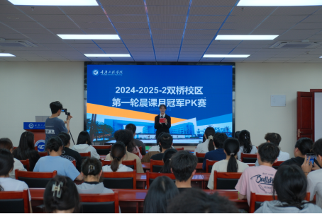 本网讯(文/图 大学生素质教育中心 王利)为展现学生寒假实践的丰硕成果,锻炼同学们的演讲能力与口才表达,4月16日下午,双桥校区于第五会议室组织开展了2024-2025-2第一轮晨课月冠军PK赛。