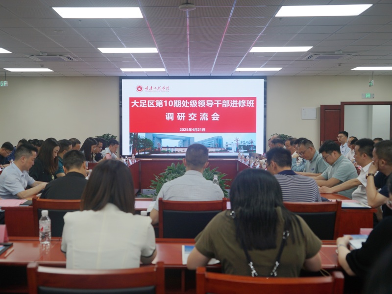 座谈会上,唐小勇对大足区第10期处级领导干部进修班一行来校调研表示欢迎。他详细介绍了学校发展历程、学校办学定位及人才培养特色、学校发展规划等,并表示希望以此次调研座谈为纽带,进一步深化交流协作,共同为区域高质量发展凝聚合力、增添动能。