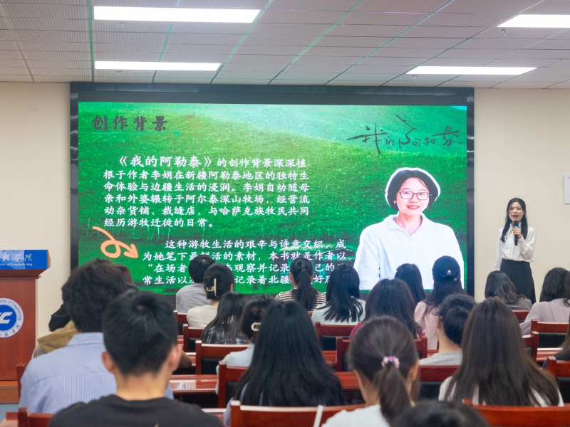 比赛现场,2024级大一的18名参赛选手围绕“好书推荐”主题展开精彩演讲。管理学院刘琴同学以声情并茂的语调分享《我的阿勒泰》一书,让我们通过文字与语言的魅力再次感受到了生命的蓬勃和力量,以及对生活的热爱与敬畏。