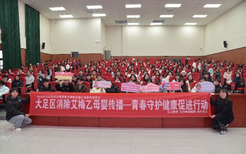 活动现场气氛热烈,秩序井然。活动伊始,工作人员为到场同学分发宣传折页。随后,一段生动的科普视频拉开了活动序幕,迅速吸引了同学们的注意力。在核心知识宣讲环节,来自大足区卫生健康委员会的专家以专业的视角、平实的语言,系统讲解了艾梅乙的传播途径、危害以及预防母婴传播的相关惠民政策,引发了同学们的深入思考。紧接着的互动问答环节将现场气氛推向高潮,同学们踊跃参与,在问答中巩固了所学知识。最后,工作人员通过展示检测试纸操作流程的方式,让同学们对检测方法有了更直观的了解。