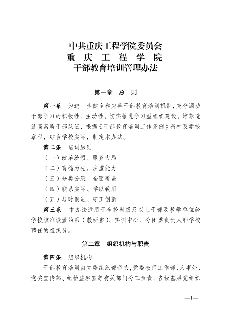 当前位置:首页 > 基本信息 > 中共重庆工程学院委员会 重庆工程学院干部教育培训管理办法