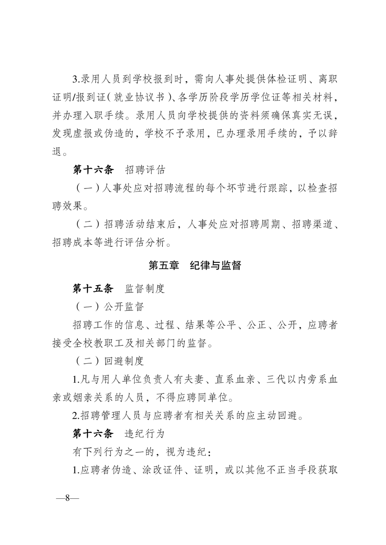 重庆工程学院教职工招聘管理办法(2024年修订)