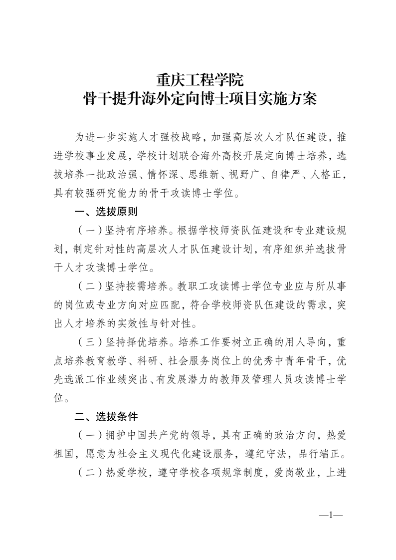 重庆工程学院骨干提升海外定向博士项目实施方案