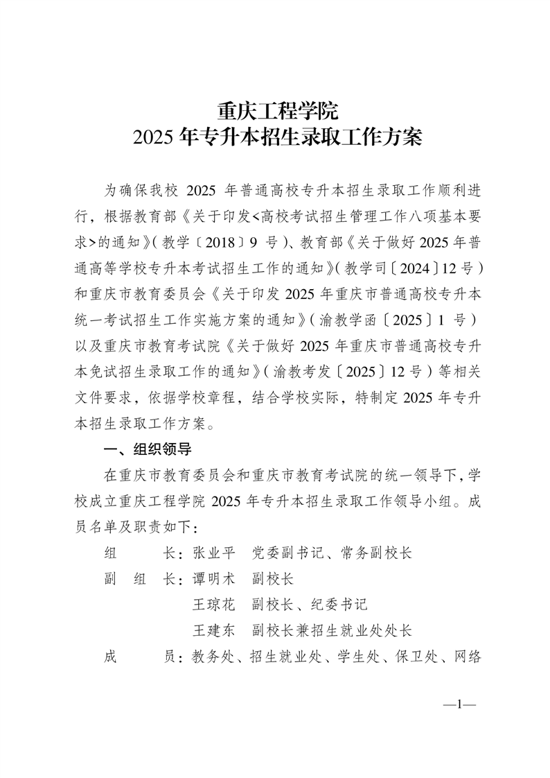 当前位置:首页 > 招生考试 > 重庆工程学院2025年专升本招生录取工作方案