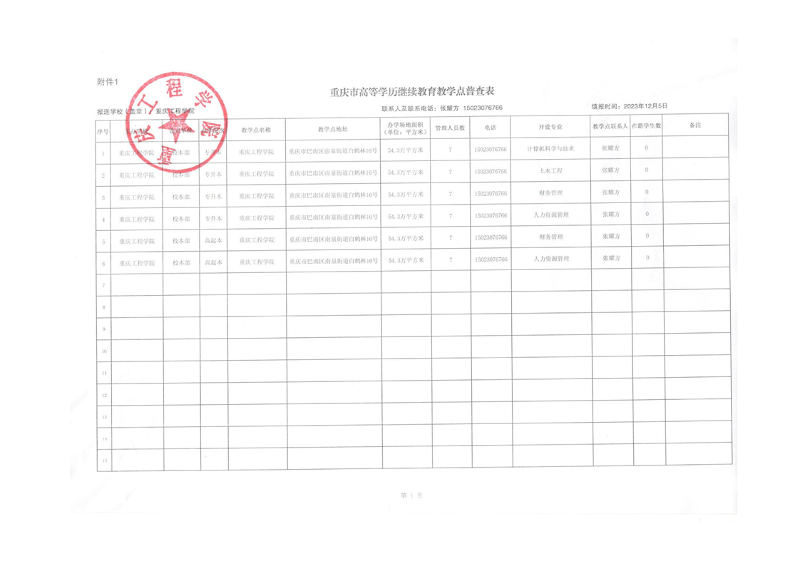重庆市高等学历继续教育教学点普查表公示