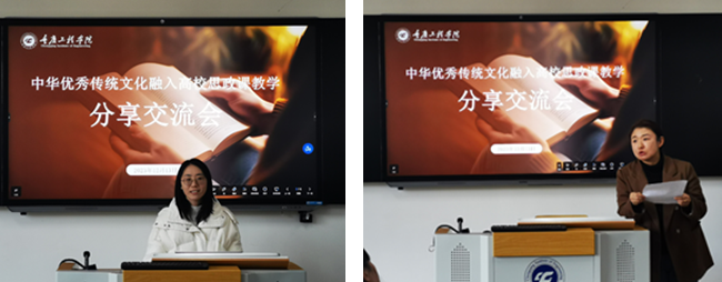 随后,朱光婷、宋文轩、郭思宁三位老师分别从中华优秀传统文化融入思政教育的实现逻辑、创新路径等方面进行分享,重点探讨了教学中存在的现实困境。围绕中华优秀传统文化融入思政课在教学中常出现的“话语失真”、“话语失向”、“话语失范”等问题进行原因剖析,总结破解之道,提升教学话语转换时效性的要求。