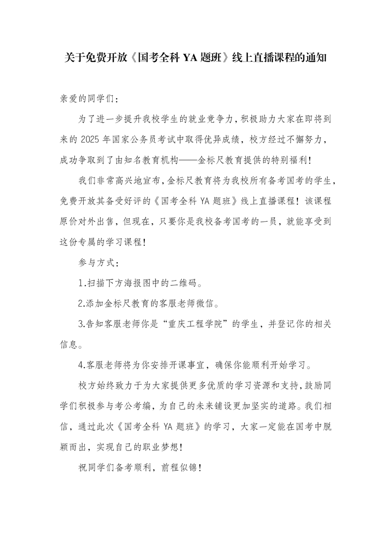 关于免费开放《国考全科YA题班》线上直播课程的通知