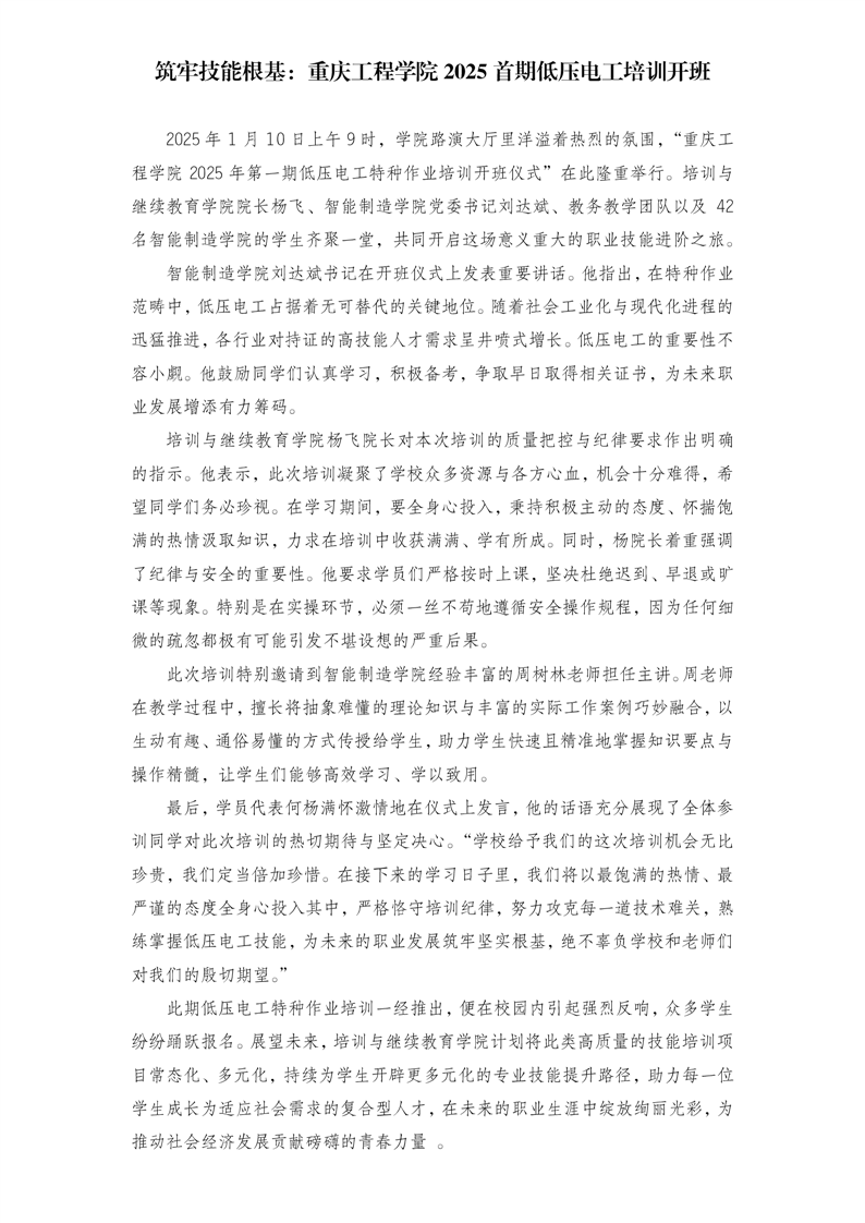 筑牢技能根基:重庆工程学院 2025 首期低压电工培训开班