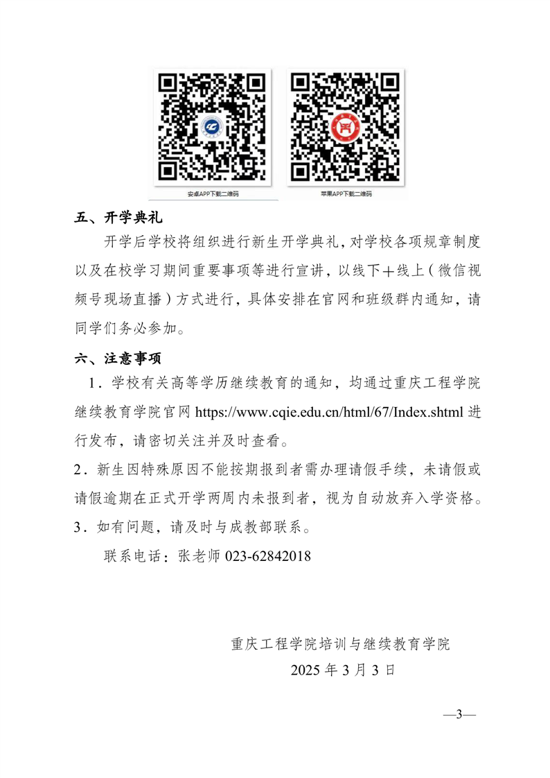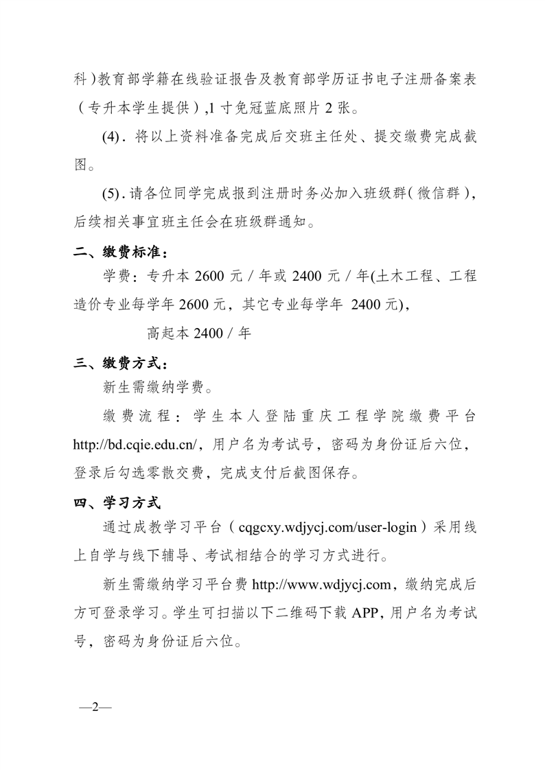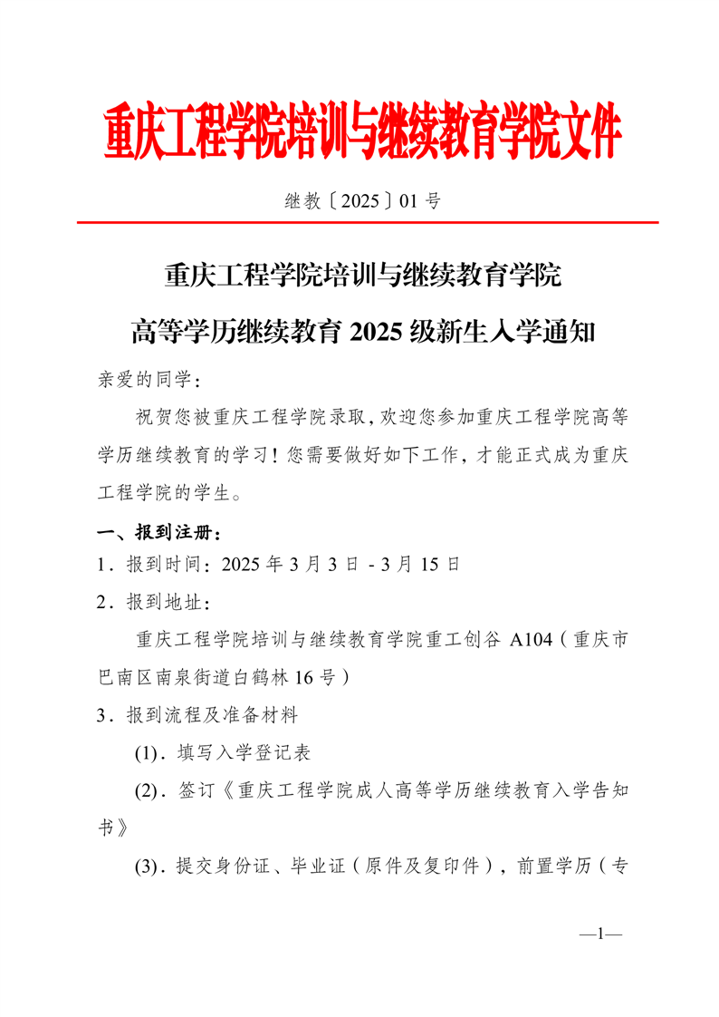 重庆工程学院培训与继续教育学院 高等学历继续教育2025级新生入学通知