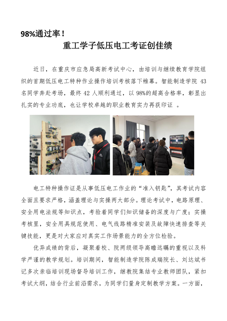 98通过率! 重工学子低压电工考证创佳绩