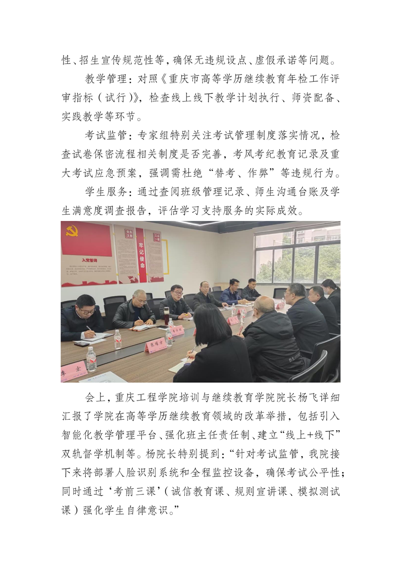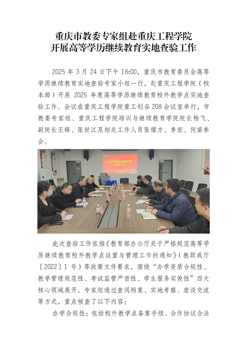 重庆市教委专家组赴重庆工程学院开展高等学历继续教育实地查验工作