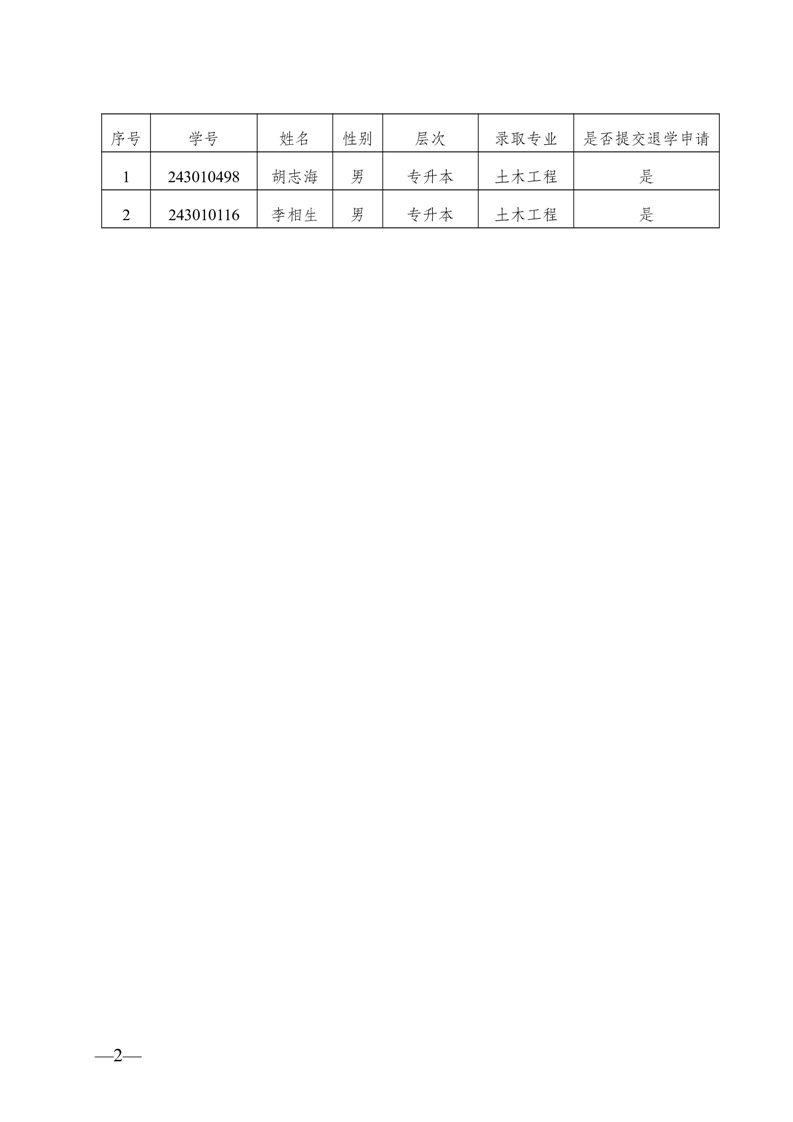 重庆工程学院培训与继续教育学院关于同意胡志海等同学退学的决定