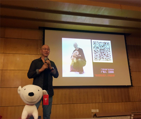 活动高潮由来自东方船(中国)传播机构CEO王郁斌,为同学们揭开创意密码,为现场的各校师生带来了一场创意盛宴!在演讲中,王先生通过生动的案例视频引出创意思维,例如别让习惯束缚了思维的理念;聪明的品牌控制用户的感性体验,愚蠢的品牌死盯用户的理性思维。王郁斌先生认为作为媒体人一定要有不要求贤若渴,学会无知若渴的精神;在王先生看来:人生最大的痛苦不是我做不到,而是,我本可以。同学们会后表示对于王郁斌先生的演讲收货颇多,对其在大赛以及今后课程工作中都有重要指导意义,表示能参与本次巡讲很开心。