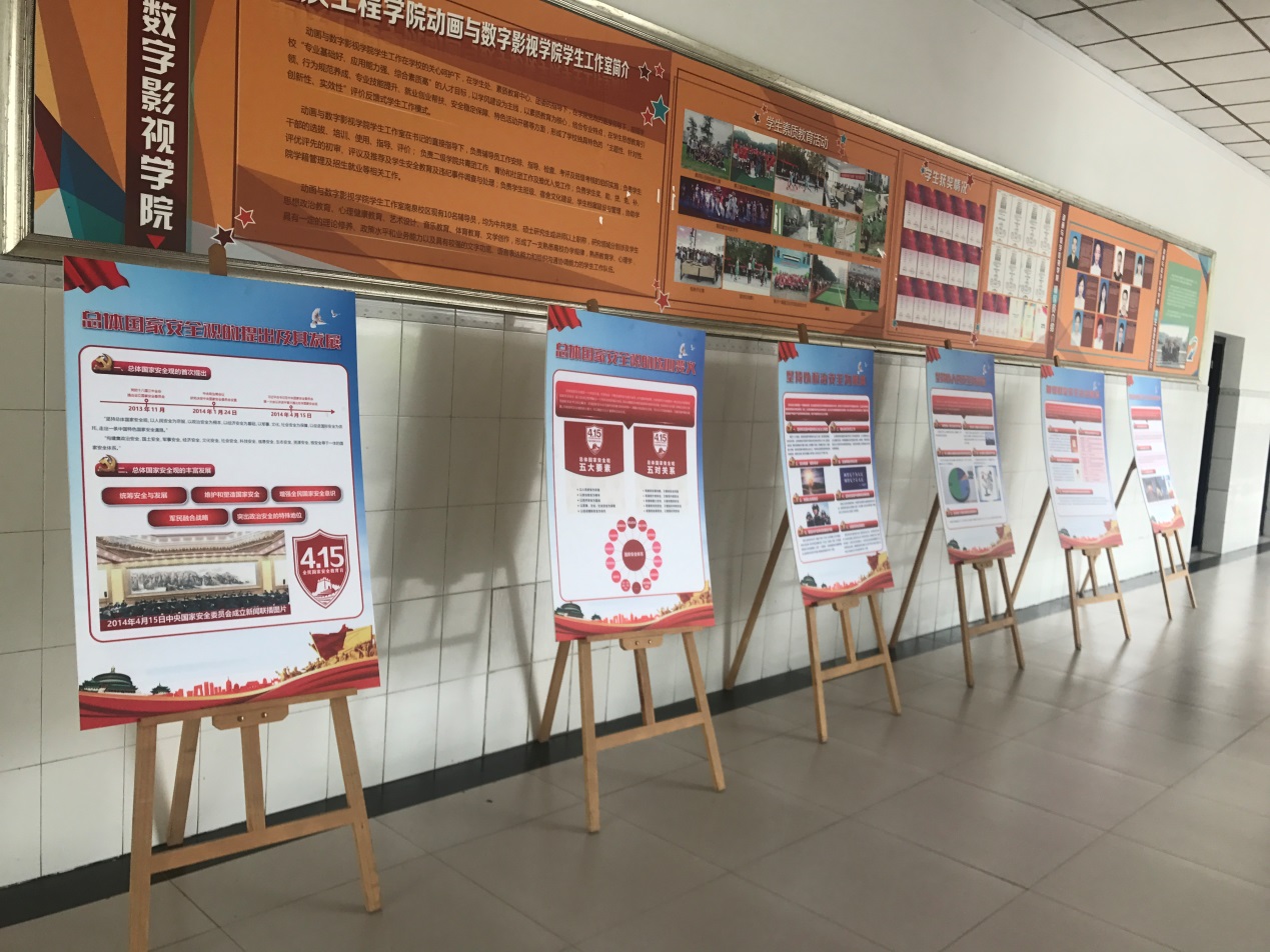 为了提高学生国家安全意识,增强学生国家安全责任,2019年4月15-17日,数字艺术学院于第五教学楼2楼走廊区域开展了4.15全民国家安全教育日宣传活动。