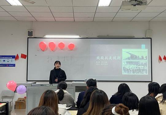 抗美援朝跨国门,鸭绿江上啸马奔。2020年11月24日数字艺术学院网络与新媒体1992304班全体同学在6121教室开展“致敬抗美援朝”主题团日活动。参与本次活动的有党总支书记徐小辉、校团委书记黄涛、团委书记古元碧、团委副书记杨道珍老师。
