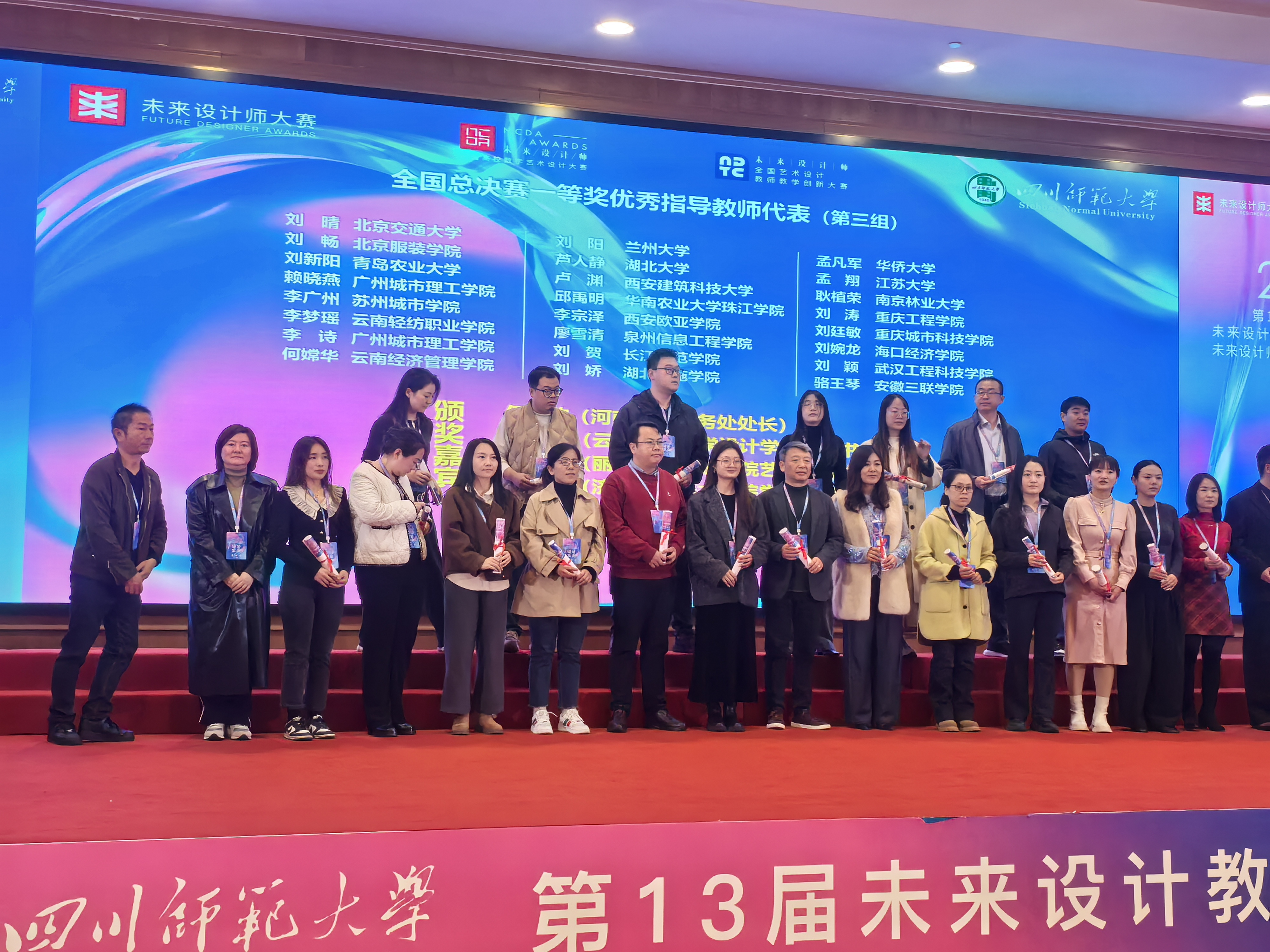本网讯(文/图 设计系刘涛)11月23日,第13届未来设计师·全国高校数字艺术设计大赛教育论坛暨颁奖典礼在四川师范大学成功举办。我院教师代表刘涛、李光友、韩斌受邀参会。
