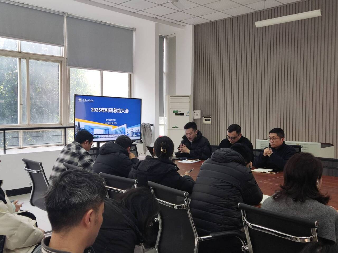 本网讯(文/图 数字艺术学院 吴政宏),12月10日我院开展2025年度科研总结大会,全面复盘全年科研工作成效与不足,同步部署2026年度科研工作计划,明确以“质量跃升”为核心导向,推动科研工作从“数量积累”向“质量突破”转型,为硕士点申报夯实基础。