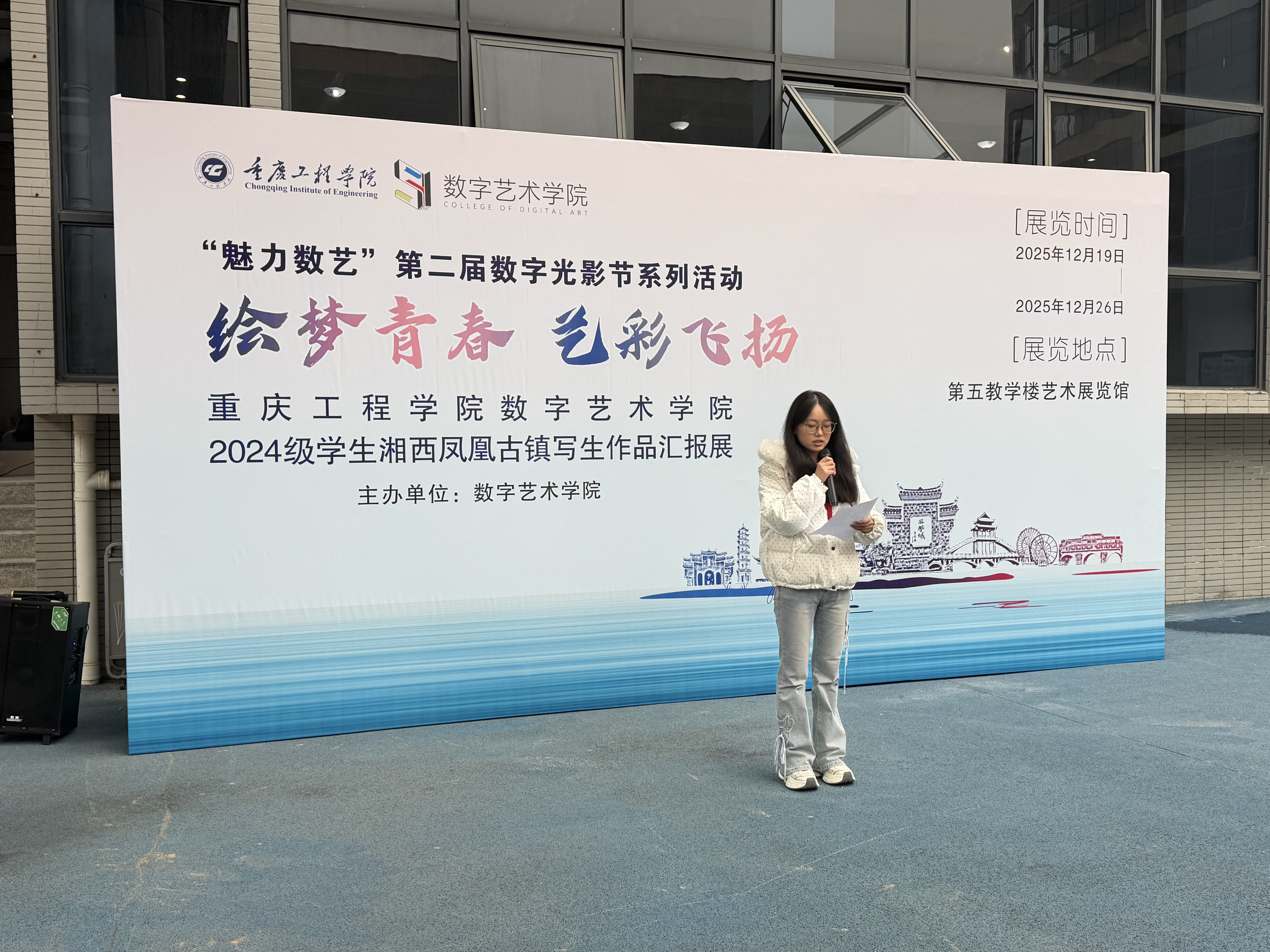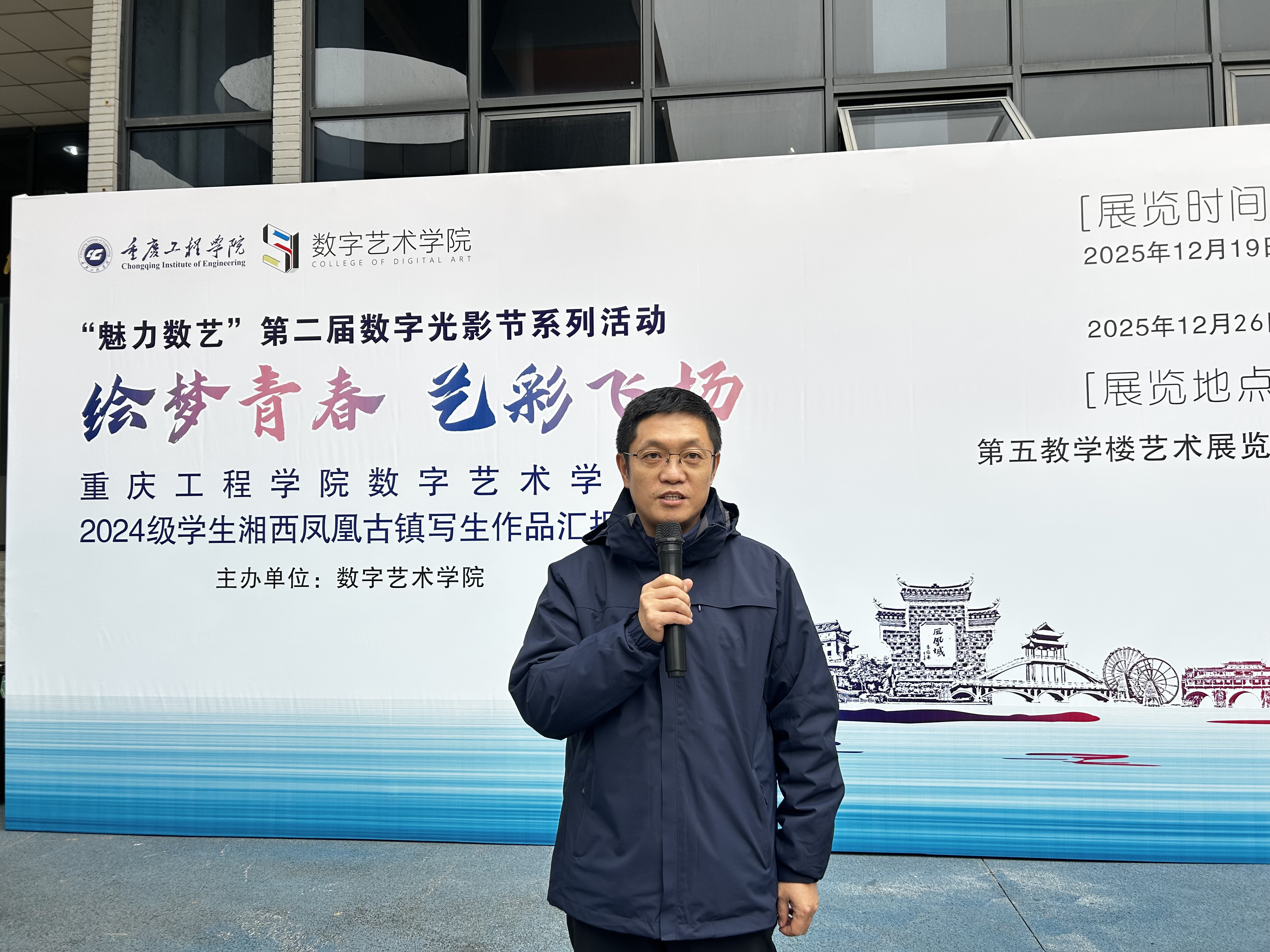 活动伊始,弋玮玮副院长简要介绍了本次写生活动的背景与展览筹备情况,强调了实地写生对我院学生提升创作实践能力的重要意义,对到场师生表示热烈欢迎。随后,庄涛文副院长发表讲话,他指出,湘西凤凰古镇拥有得天独厚的自然景观与深厚的人文底蕴,是艺术创作的绝佳沃土。此次写生实践是学院实践教学体系的重要组成部分,不仅让学生走出课堂、贴近自然,更在观察与创作中锤炼了专业技能、拓宽了艺术视野。他希望同学们以此次展览为新起点,持续深耕艺术领域,在创作中坚守初心、勇于创新。