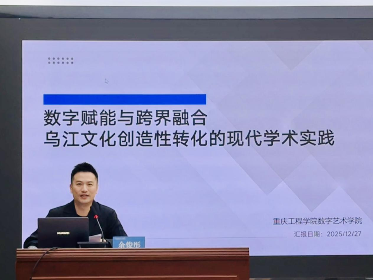 本次研讨会学术成果展示环节亮点突出,余俊彤博士凭借在乌江文化数字化转化领域的突出研究,成功入选首批“乌江学者”名单。在主旨报告中,他以《数字赋能与跨界融合-乌江文化创造性转化的现代学术实践》为题,从数字技术应用、跨界融合路径等维度,系统阐述乌江文化活化传承的创新方案,提出的学术观点兼具理论深度与实践价值,赢得与会专家学者广泛共鸣。在颁证授牌仪式上,我院正式获授“副会长团体会员单位”称号,及“乌江学研究基地”牌匾,这一荣誉既是对学院过往研究成果的肯定,也为未来深化乌江文化研究搭建了更高平台。